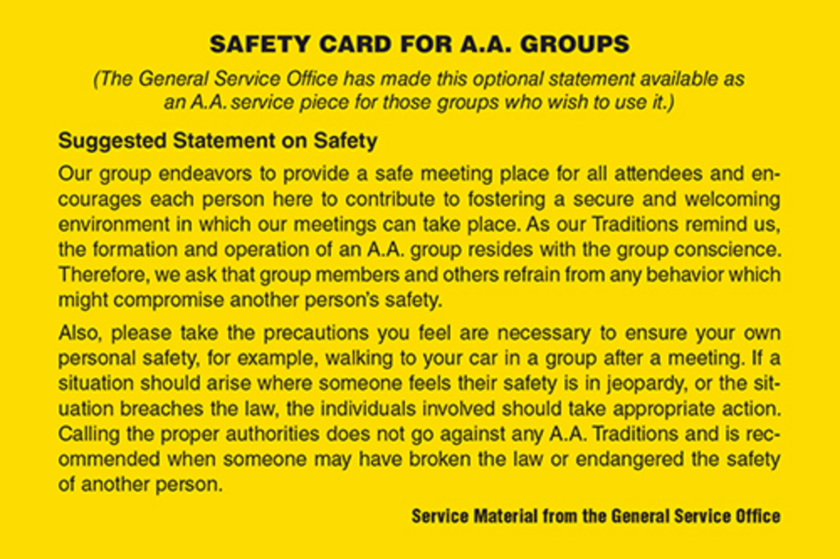 / Safety Card for A.A. Groups